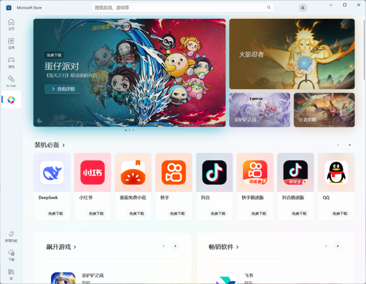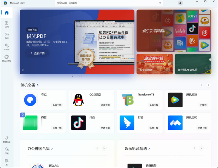 在MicrosoftStore中还设立了应用宝专区,除了常用软件外,还可以提供一些游戏进行下载。