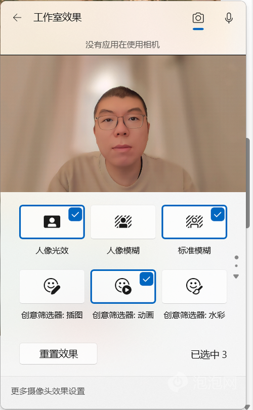 SurfaceLaptop,13英寸也支持摄像头的[工作室效果],可以在调用摄像头视频中进行实时的模糊背景、改变画面风格等功能。