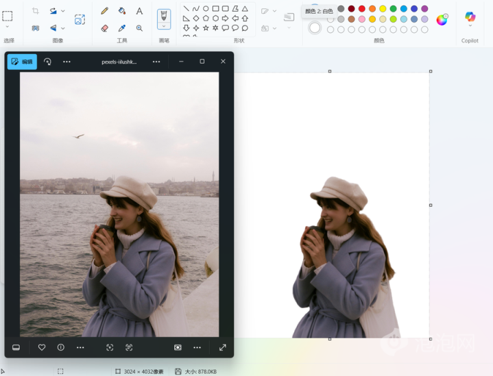 在AI的加持下,系统自带的画图应用也具备了更实用的功能,可以实现擦除以及移除背景的功能。